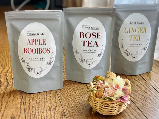 VISAGE&relaxシリーズで、昨日は施術中に「アップルルイボス」をいただきました。こちらのシリーズはいずれも自社販売をされておます。