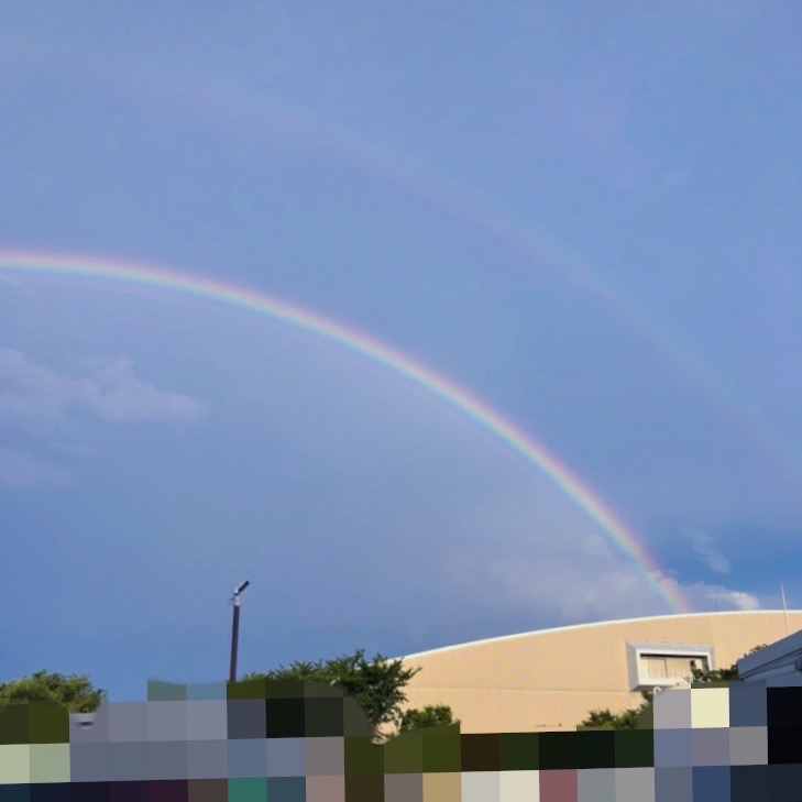 8月13日、月遅れ盆の迎え火の日に大きな虹が二橋見えました。こんなに大きな虹を見たのは久しぶりでした。大きな虹 …