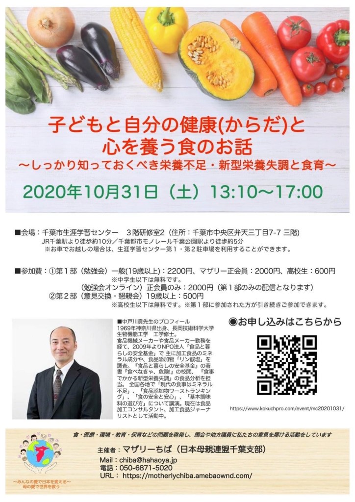 10月31日(土)、加工食品ジャーナリストの中戸川貢先生の講演会に参加してきました。