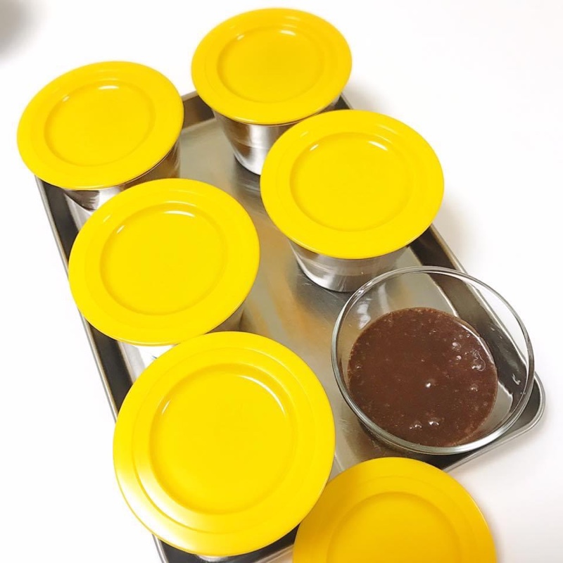 ★プリン型に入れて、ここまで準備(⑤まで)を済ませて置けば、あとは食べたい時にオーブンで焼くだけです♫