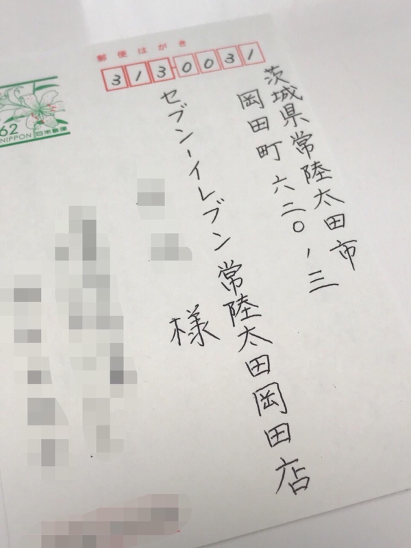 出先での対応だったのですが、後日無事に代替え品が手元に届きました。対応してくださったお店の方宛てに御報告を兼ねた御礼の葉書をしたためました。
