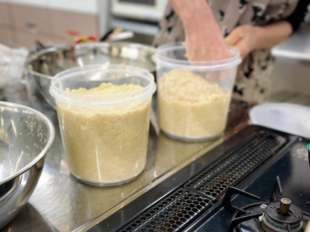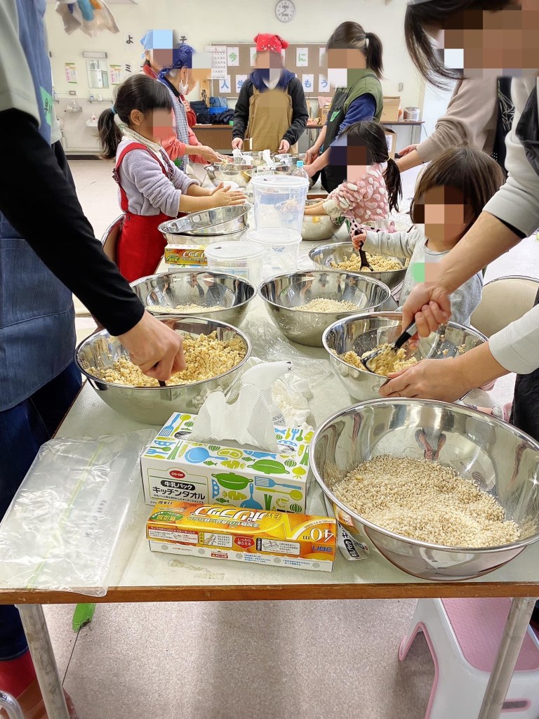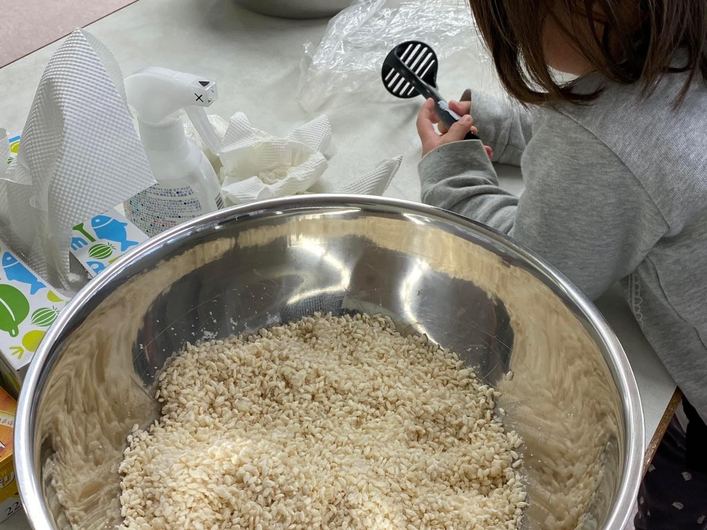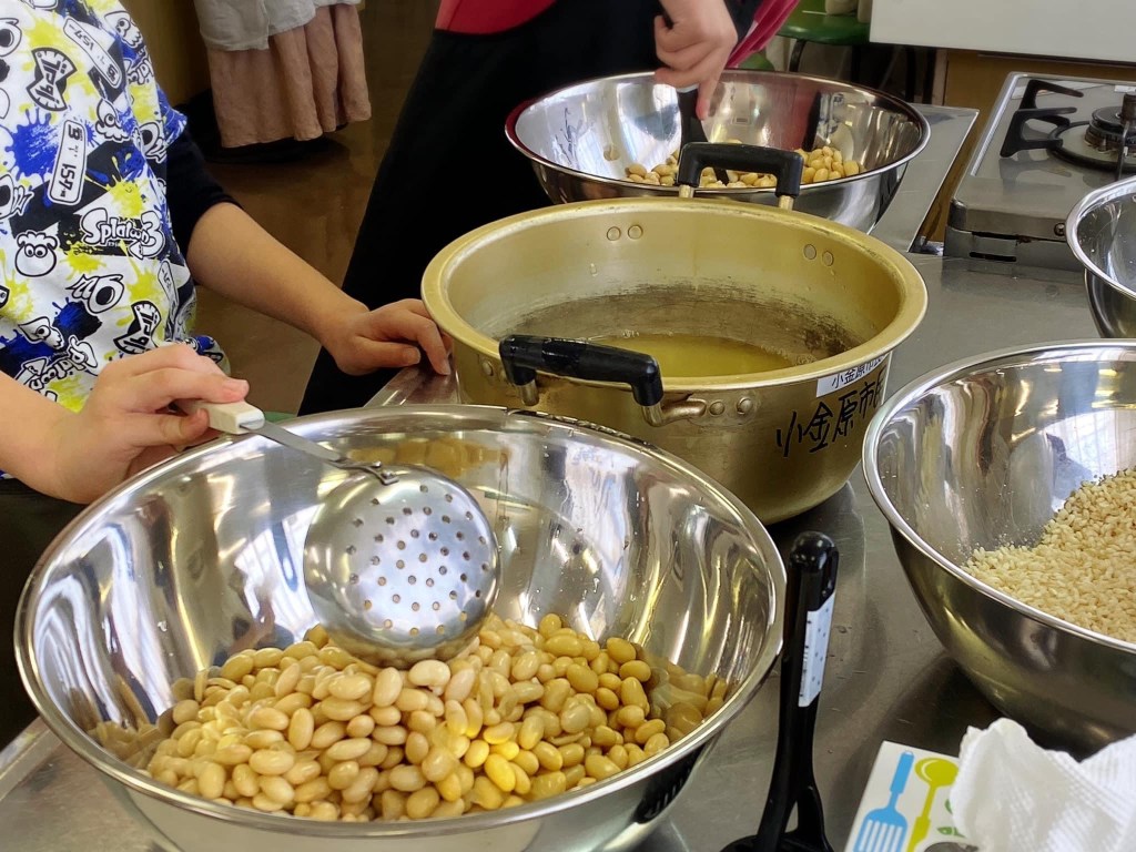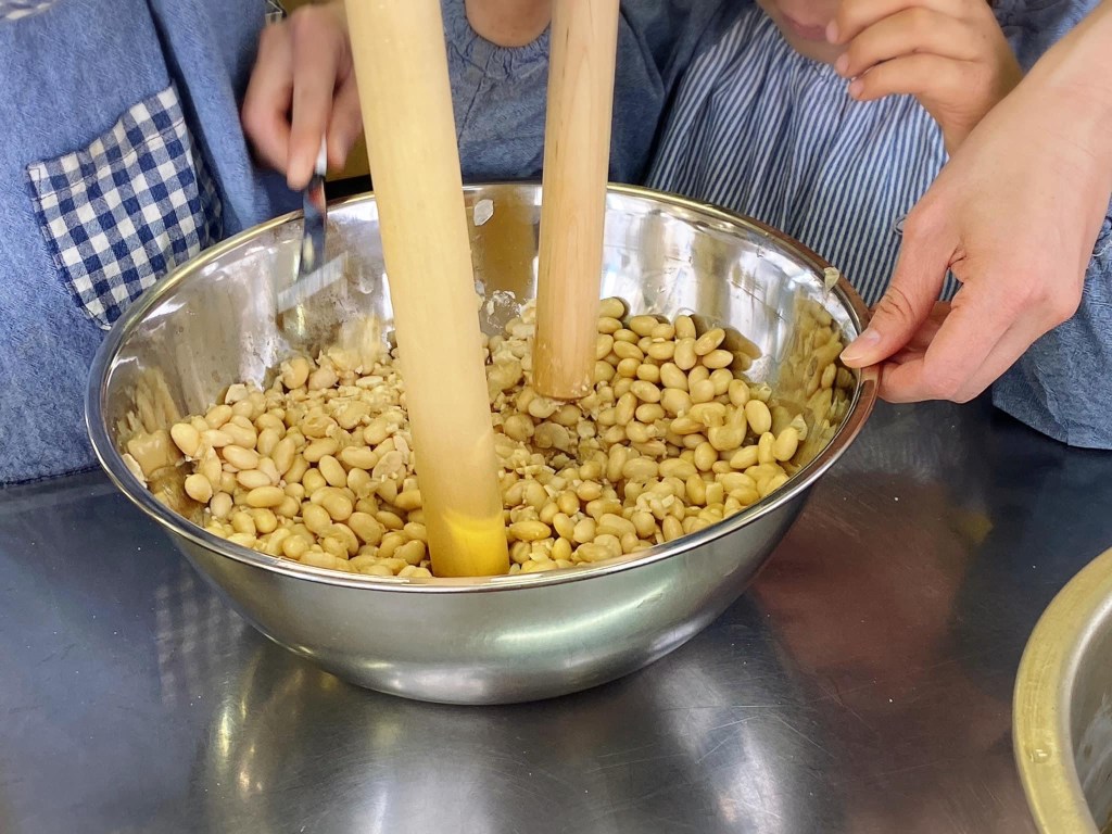 小さな手で大事そうに麹をばらし、大豆を潰して、混ぜて詰める。・・・と、言葉にすると、とても簡単ですが、その中にポイントがいくつもあります。子どもたちは上手にポイントをクリアしていました。