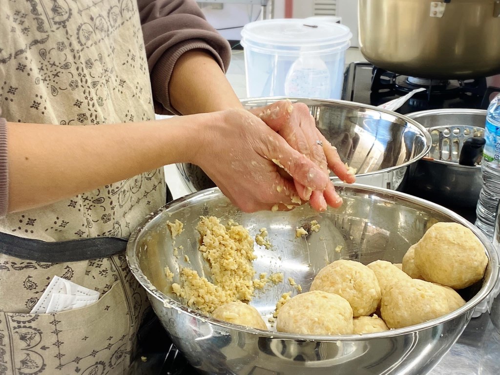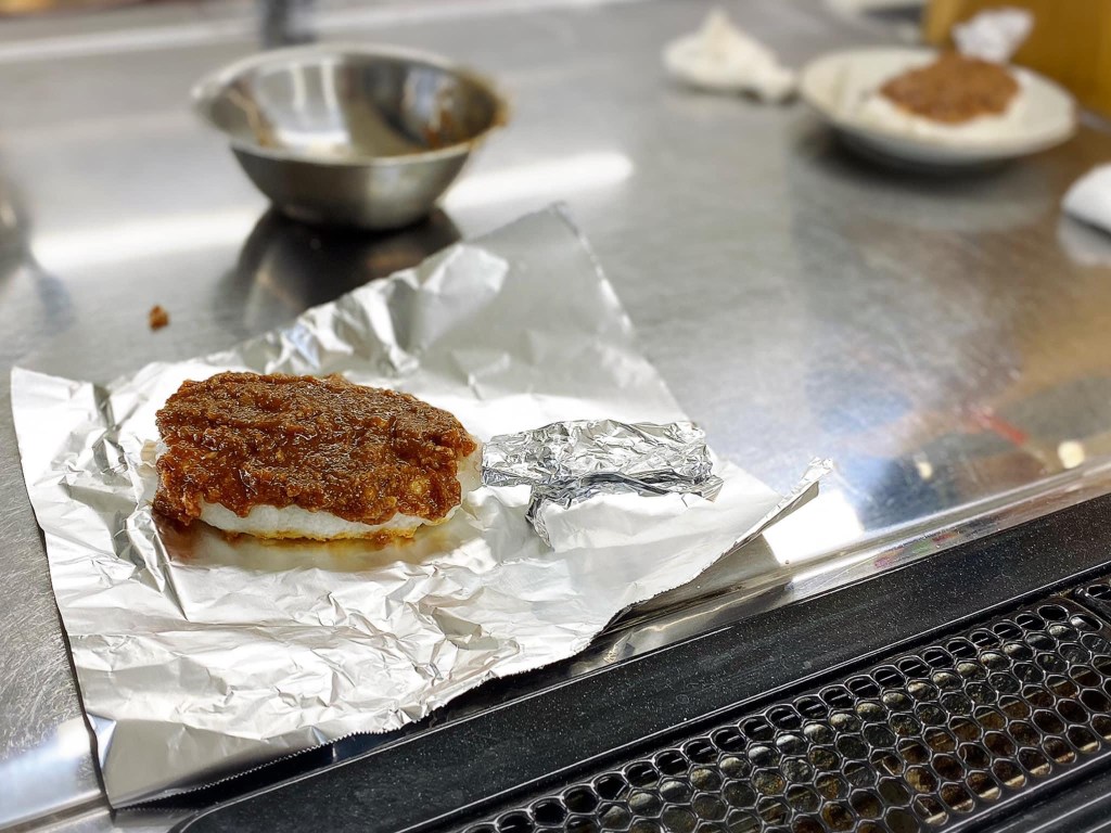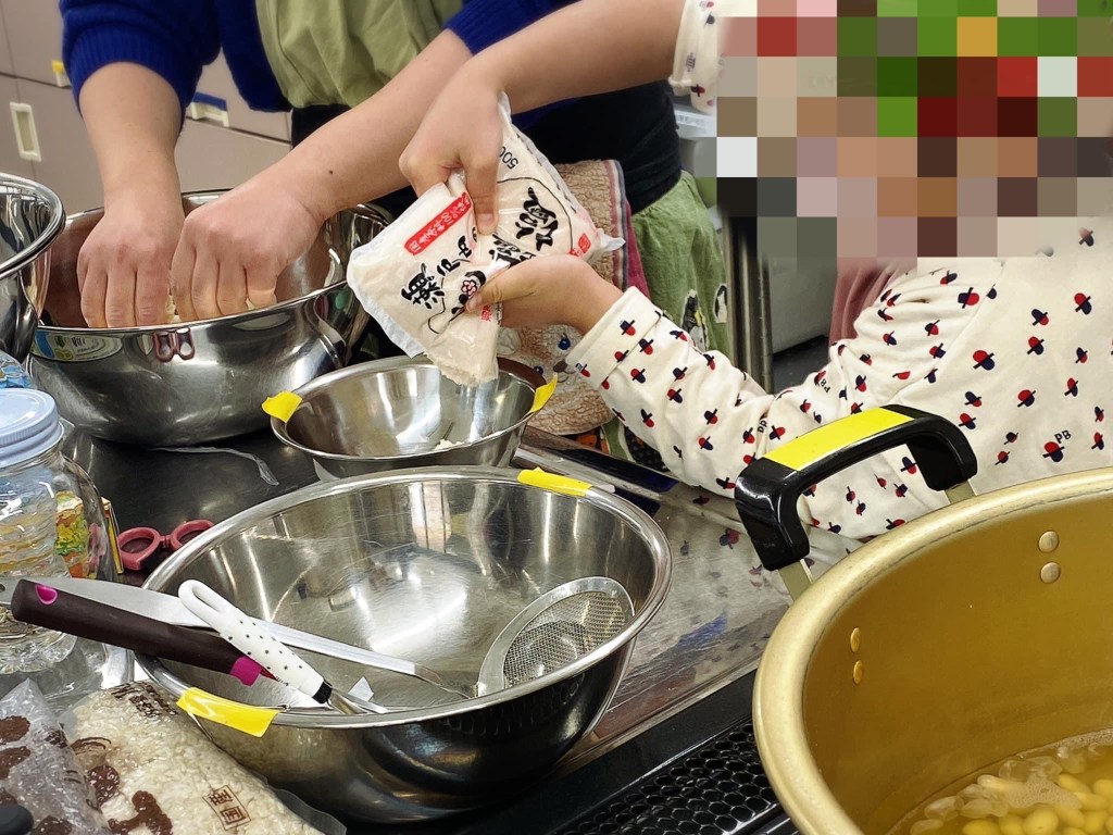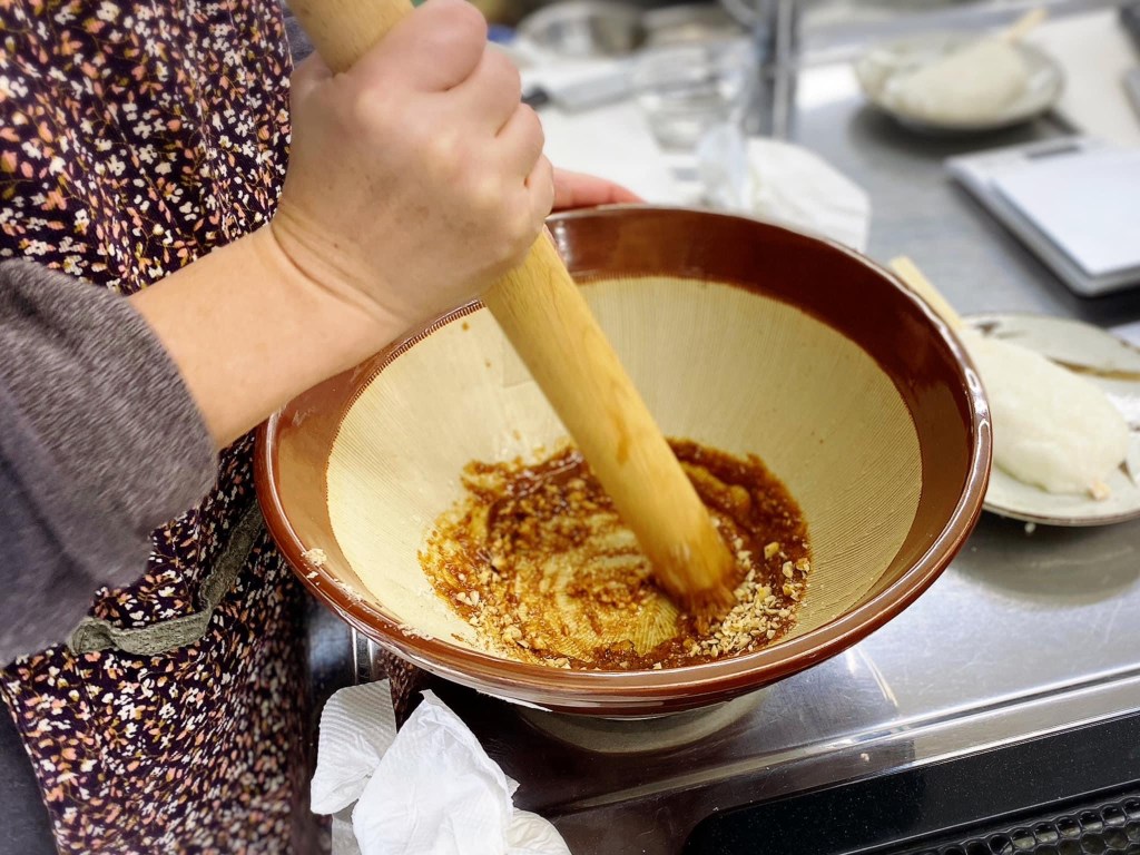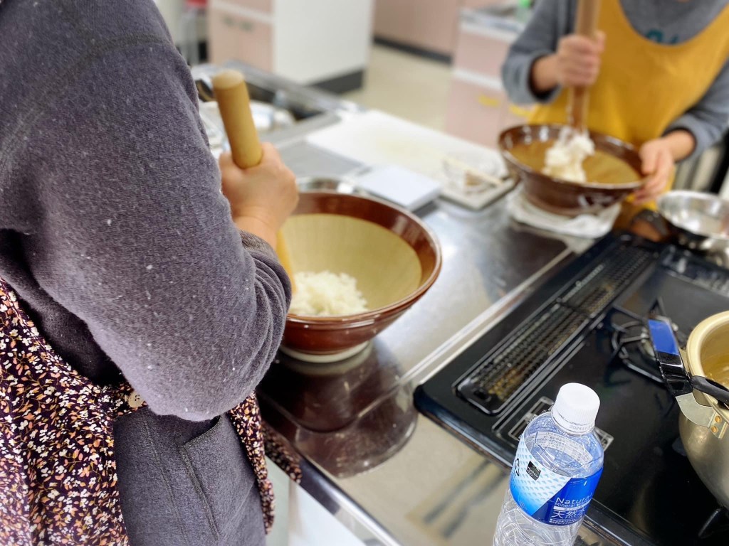 そして今季は、コロナ禍によりお預けになっていた試食が三年ぶりに解禁となり、仕込み後に調理実習と試食をすることが叶いました。今季の実習・試食メニューは「五平餅」でした。