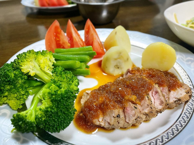 低温調理なので、お肉はしっとり柔らかい仕上がり! 豚ヒレ肉は高タンパク質で低脂肪、しかも鉄や亜鉛が豊富なので女 …