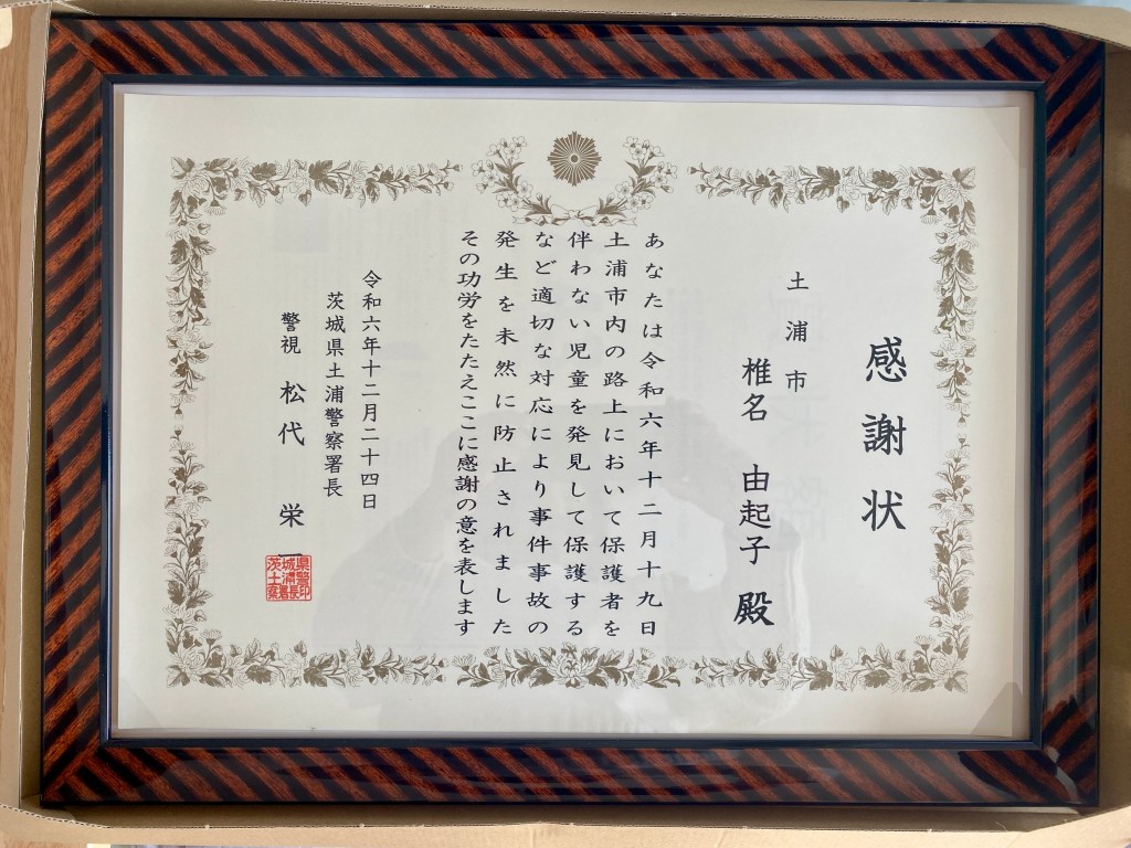 そんなこんながあって、後日、土浦警察署に呼ばれて表彰されてきました。