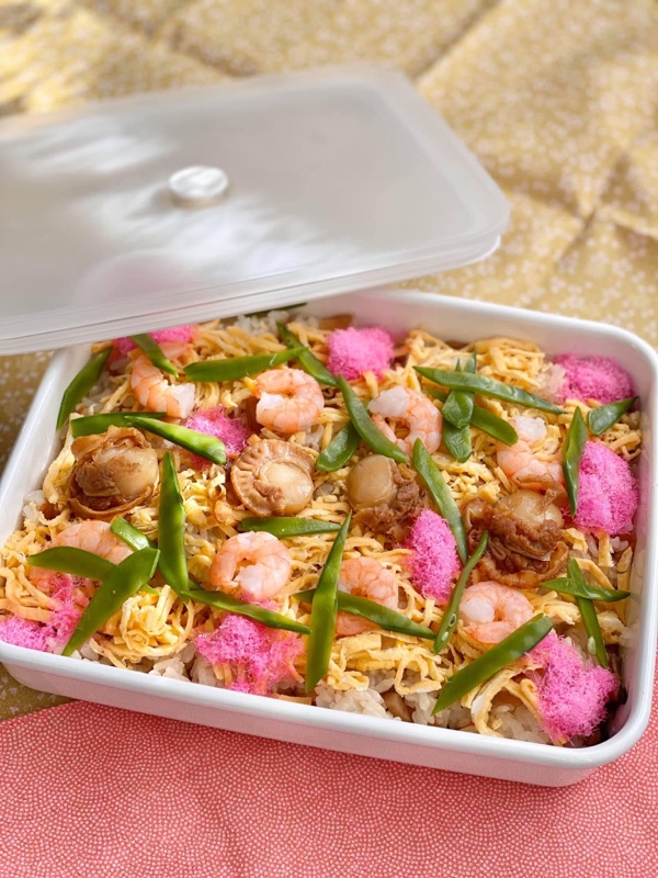 お祝いシーンの多い季節に、春の食材を集めた彩り豊かなちらし寿司です! 体を冷やさない蒸した鯛を使ったちらし寿司 …